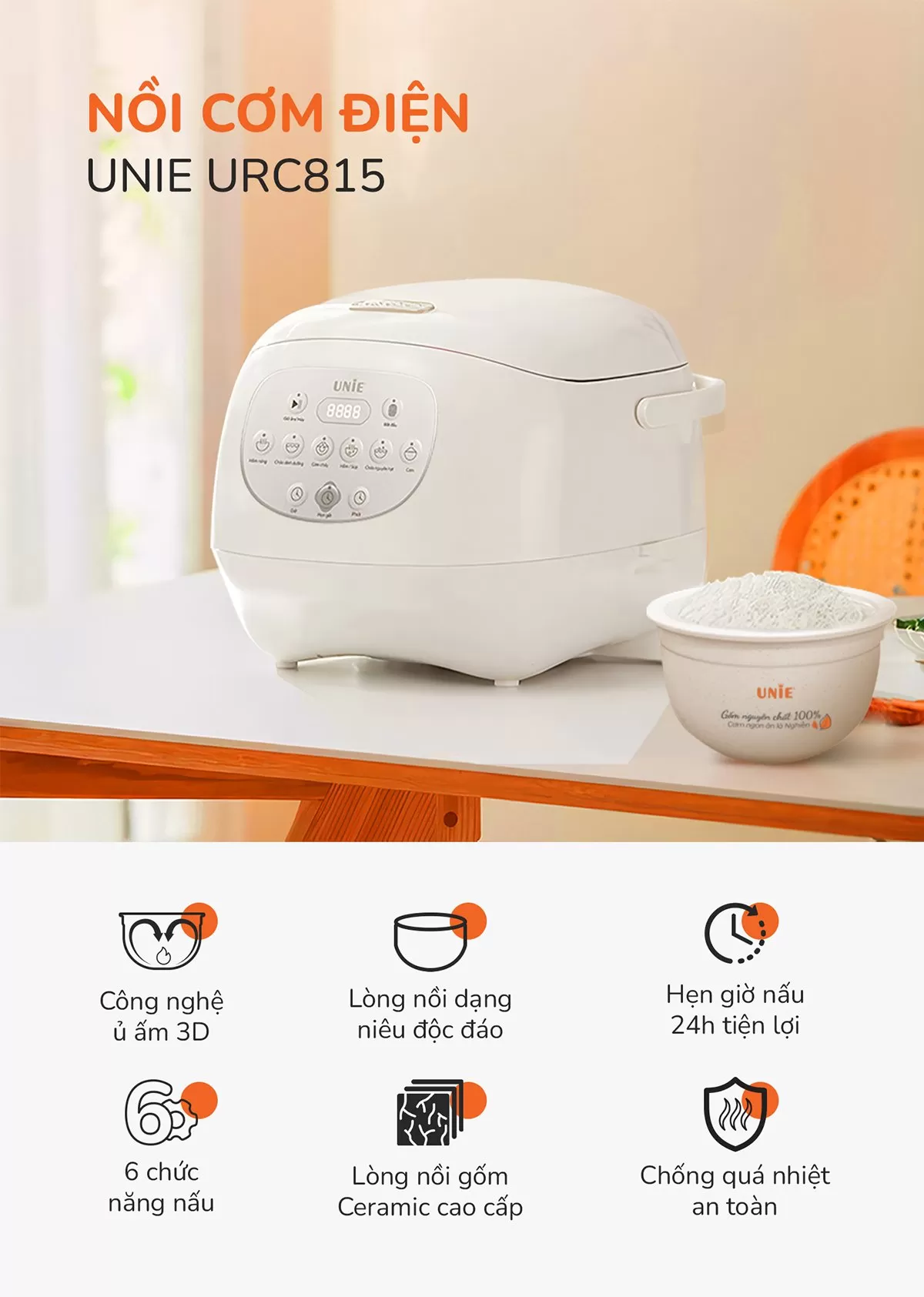 Nồi cơm điện UNIE URC815, lòng gốm, dung tích 1.5l
