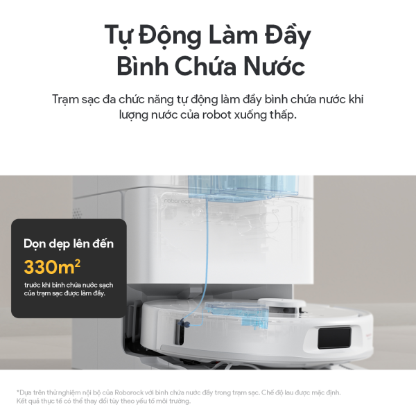 - Tự động làm đầy bình nước sạch trên thân robot.